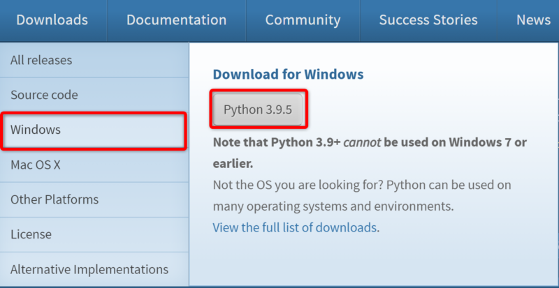 注)ここでwindowsをクリックすると上の図の 『Python Releases for Windows』のページへリンクしています。